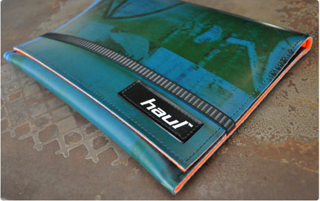 Get your mind out of that gutter! I’m talking about Haul’s new iPad cases and other goodies. Haul struck on the bright idea a few years ago of taking unused billboard posters, which are made out of this heavy duty plastic-fabric, and turning them into funky bags for your laptop and other carry-ibles. These new iPad cases are made out of old printer blankets, and you can still see the prints on them! There’s also a satchel made out of the inner tube of a tyre. Neat eh? So if you need a new case or bag can we tempt you with some recycled goodness?