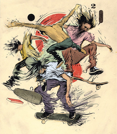 Based in Minneapolis in the USA, Andres Guzman is an illustrator slash designer with a flair for colour and a versatile pen style. Be it in colour or monotones, this guy can draw! Influences seem to include zombies and skateboarding – all good things really – but make sure you check out his personal projects for a real slice of cool! After a brief visit to his website we discovered these amazing visual gems just for you. But don’t be selfish now and make sure you share with your friends!