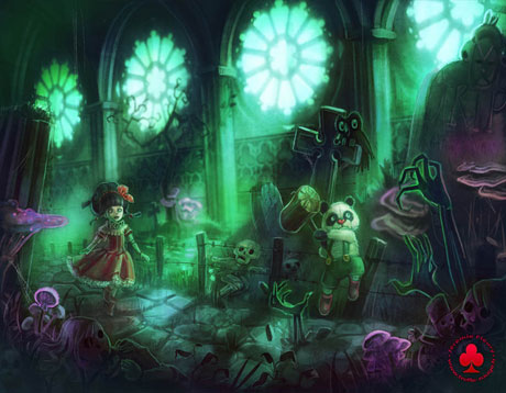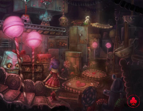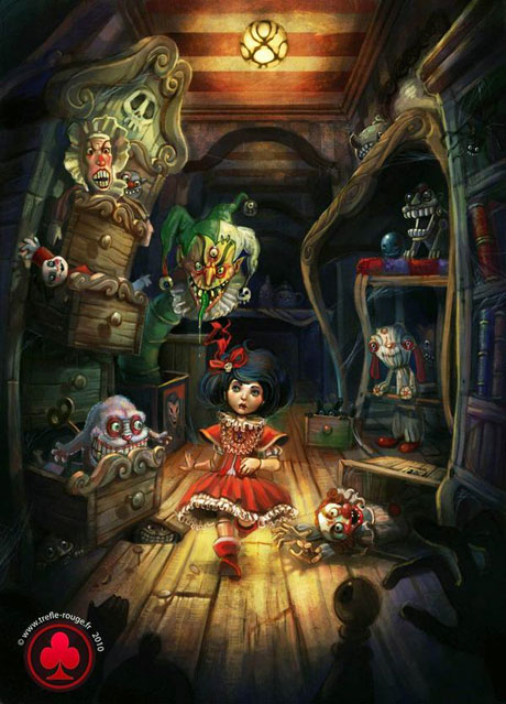 The beautiful illustrations and paintings of French artist Jérémie Fleury have been transformed into a creepy-cute game entitled Lost Puppets. From what I can gather, a two children enter an other world in a kind of theme park ghost train meets Alice in Wonderland scenario, and then must face the horrors inside and navigate the pitfalls of an evil toy factory. I actually have no way of knowing if this surmise is correct however, as all the information I can find so far on this is in French – oh how I wish I could converse Le France! My linguistic shortcomings in no way detract from the beauty of Jérémie’s illustrations however, and there’s even some video below from the Lost Puppets game trailer for you to enjoy. I do hope there’s an English language version as I so want to play this!