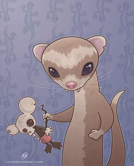 The work of John Schwegel is the work of evil genius, an evil genius with a super hero sense of style. His comic like illustrations are sure to put a smile on that dais, and there’s a wicked sense of cheeky hiding inside each one. We also love it that his Deviant Art site is named after the fluffy little cat-dog-thing in the Dark Crystal – Fizzgig. Happy Friday!