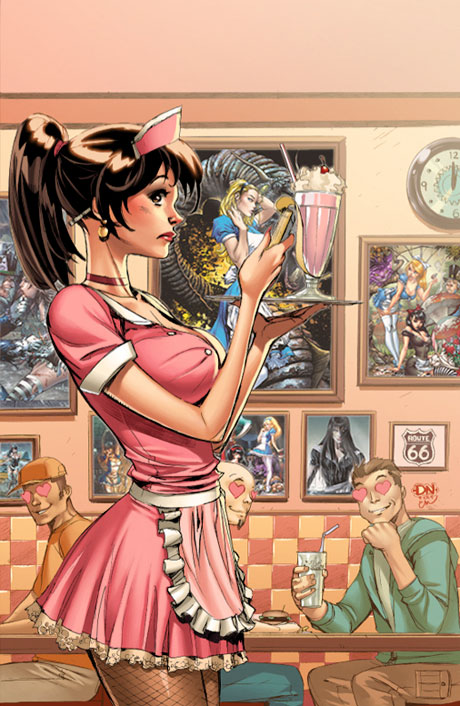 Meow! Check out these cute patooties! Welcome to the comic pin-up work of David Nakayama, who it seems has a slight obsession with Alice in Wonderland – well who wouldn’t after checking out these illustrations? Based in Santa Clara, California, David has been hitting the pens, pencils and inks for 8 years now, working as he says extensively in the comic, concept and package art fields for such peeps as NCsoft, Disney, Marvel Comics, and loads of others.