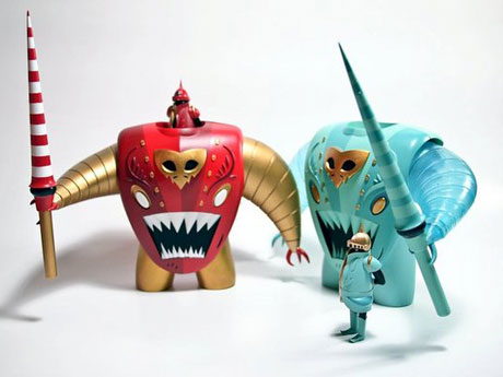 If you’re a fan of the Labyrinth, and those crazy fighting robots with the little people inside them, steering them about then we think you’ll be right into these very cool vinyl figures from the mind of Patricio Oliver. This Argentinian based creative brain has a few different vinyl figures series’ under his belt to date, but we just really dug these ones – especially the very cool origins stories behind them… read on!