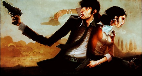 Loic ‘e338’ Zimmermann describes himself as a French Concept Artist, but we think this label simply does not do his cool art justice. From anti-heroes Bonnie and Clyde to the superhero in his spare time, and everything in between from steampunk goddesses to mob bosses he covers it all, and aside from creating art goodness Loic is a 3D Supervisor who has worked on heaps of cool filums such as Thor, True Grit, Percy Jackson, Underworld, Wolverine and Book of Eli.
