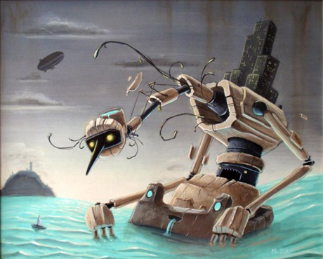 Today we are just out and out digging’ the work of Matt Linares. His wooden-esque mechanical beings are beautifully rendered and we also like the nautical influence that seems to be going on as well.