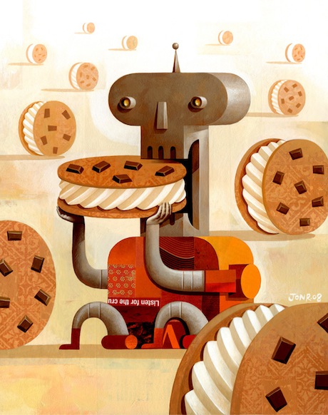 The work of Jon Reinfurt is amazing – fact! His website is like a candy store of colourful goodness and vintage style – we were instantly addicted! From his Ice Cream robots to a dragon smoking a ham it was just one delightful illustration after another. Gush!