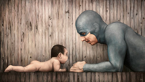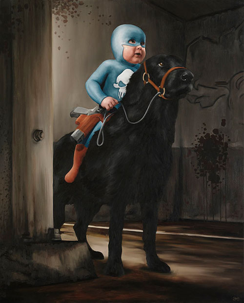 What if we could chronicle a Super Hero’s life from cradle to grave? The highs, lows, cheeky moments, perils, victories? How would their clothing work with their ageing bodies? Could they still stop bad guys despite a wrinkled brow? The Swedish born artist Andreas Englund has envisaged just that with this amazing series, following our Hero as he heads out on his first mission, through his prime years and then finally we see our Hero as he progresses into the sunset of his years. So wonderful!